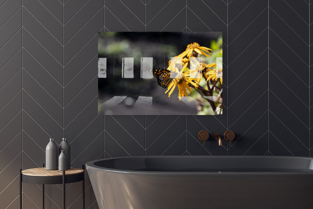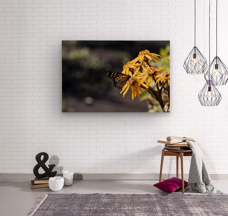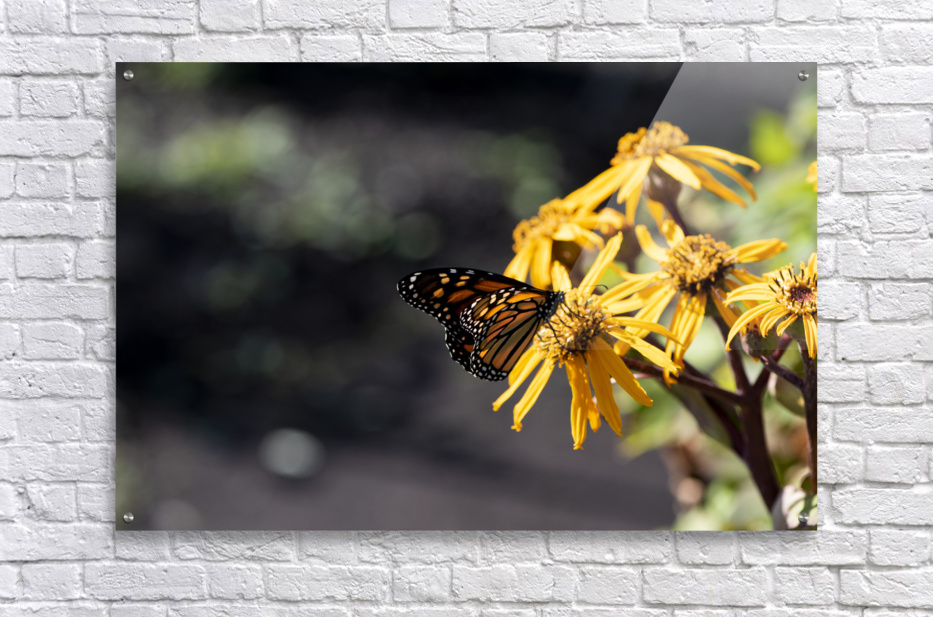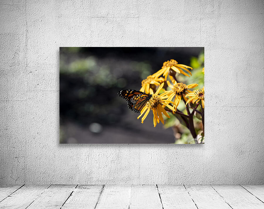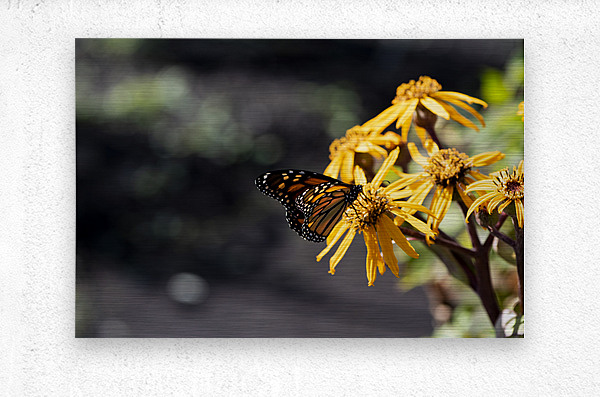 Experience the beauty of nature up close with this macro photograph of a Monarch butterfly with its wings open on a bed of flowers. The Nikon D810 captures the vibrant colors and intricate details of the scene, creating a captivating image that celebrates the wonders of the natural world. This photograph was taken by the artist MeLY