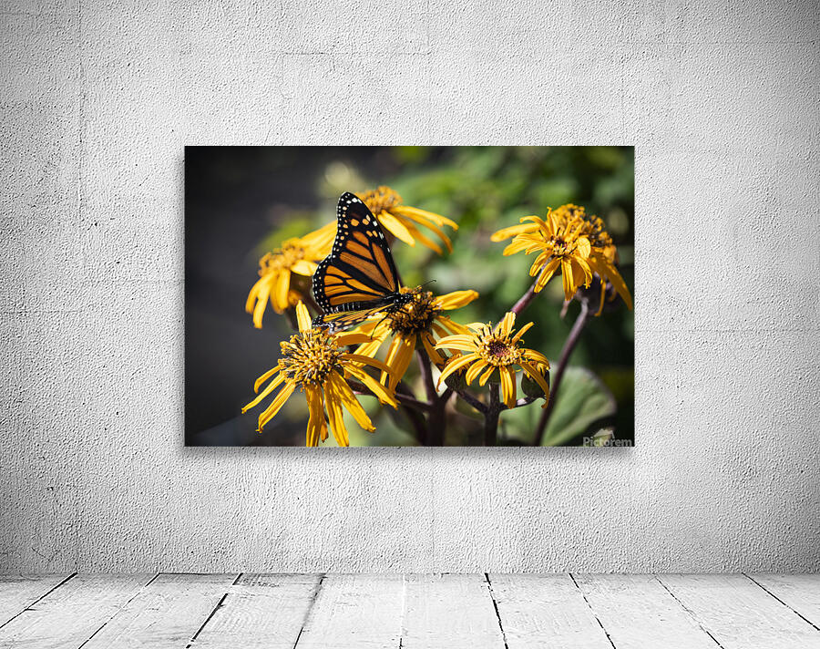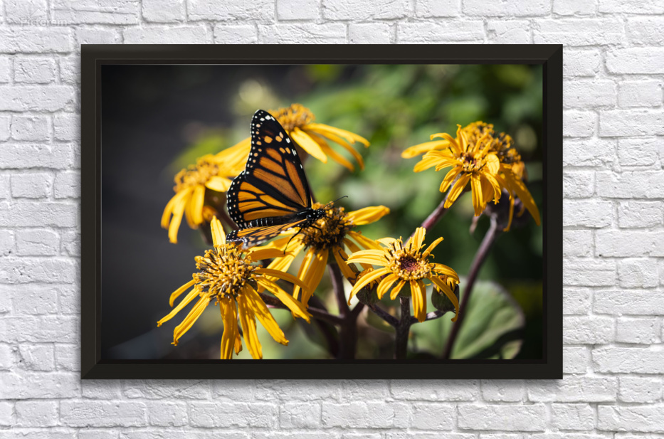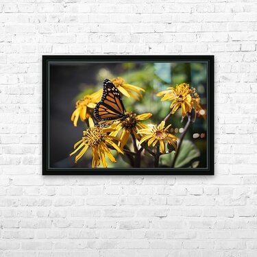 Monarch Unveiled: Open-Winged Butterfly on Flowers Picture Frame Printing