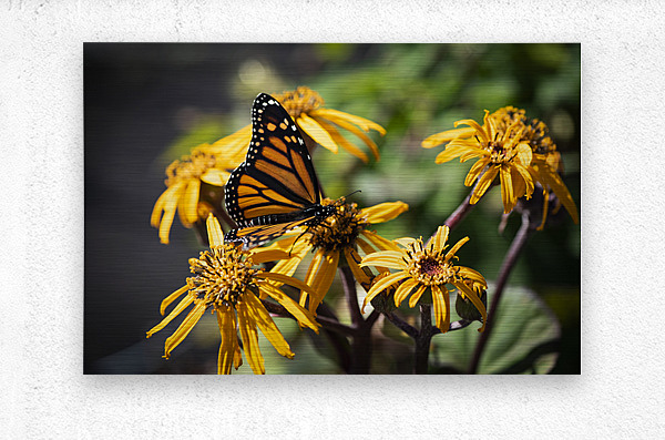 ABOUT THIS ARTWORK: MONARCH UNVEILED: OPEN-WINGED BUTTERFLY ON FLOWERS