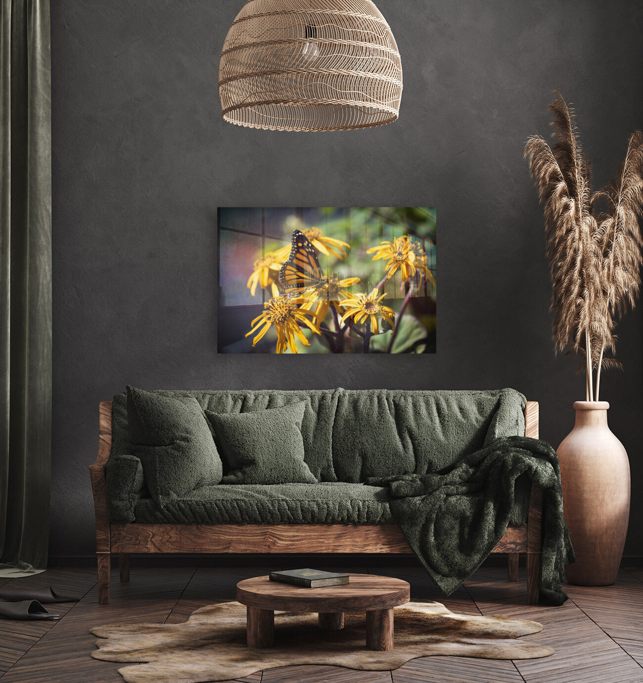 Monarch Unveiled: Open-Winged Butterfly on Flowers Wall Decor Frame