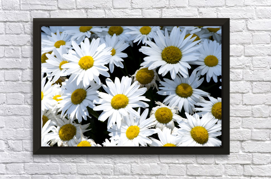 Harmonie naturelle : Decouvrez la delicatesse dun tapis de marguerites blanches en macro Picture Frame Printing