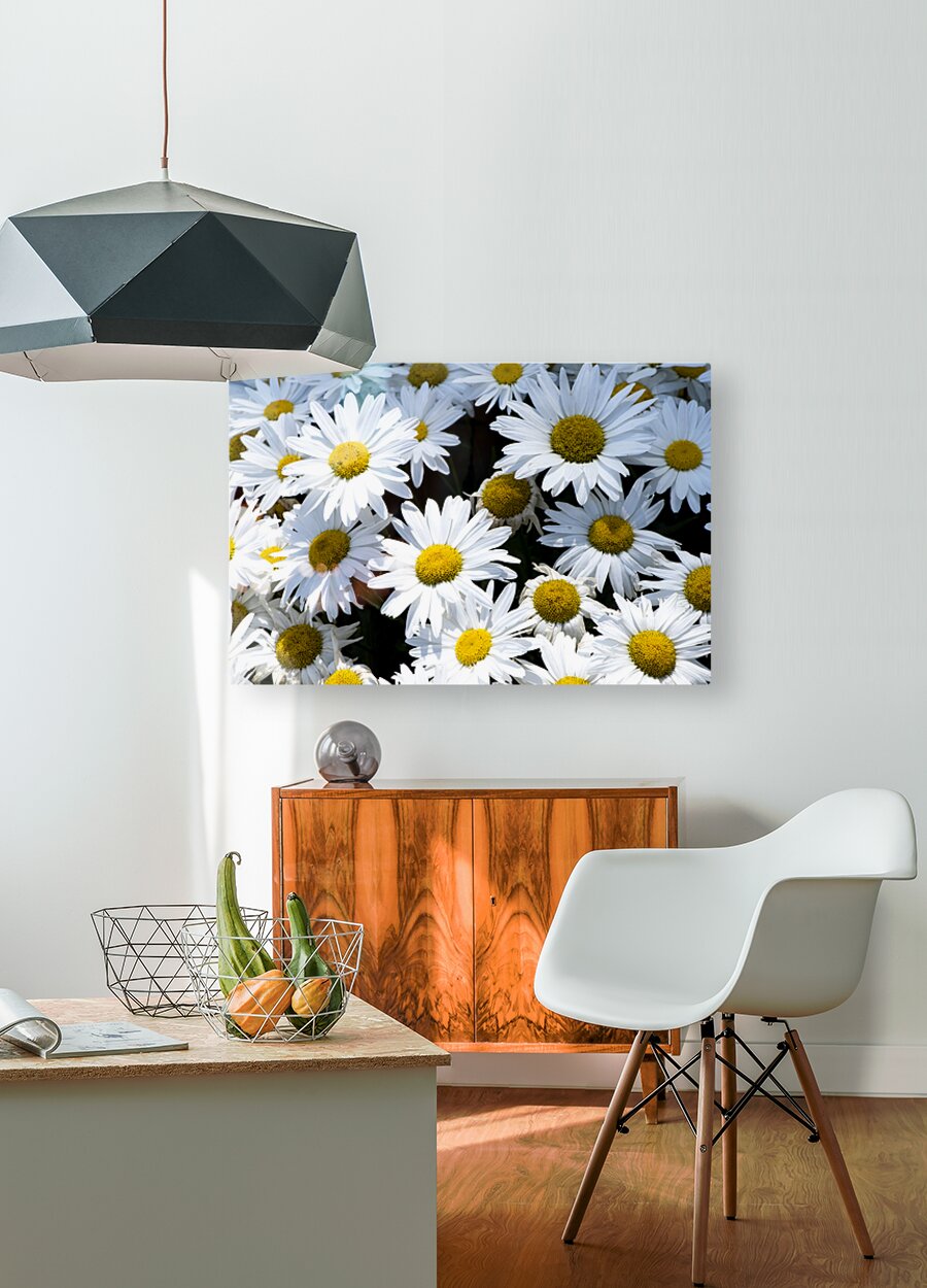 Get this artwork "Harmonie naturelle : Decouvrez la delicatesse dun tapis de marguerites blanches en macro" in a framed print.