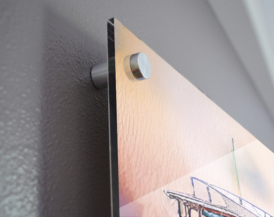 Printed to the edge - Ready to hang - provided with 4 premium polished aluminum stand off ( wall screws and mounting hardware provided )