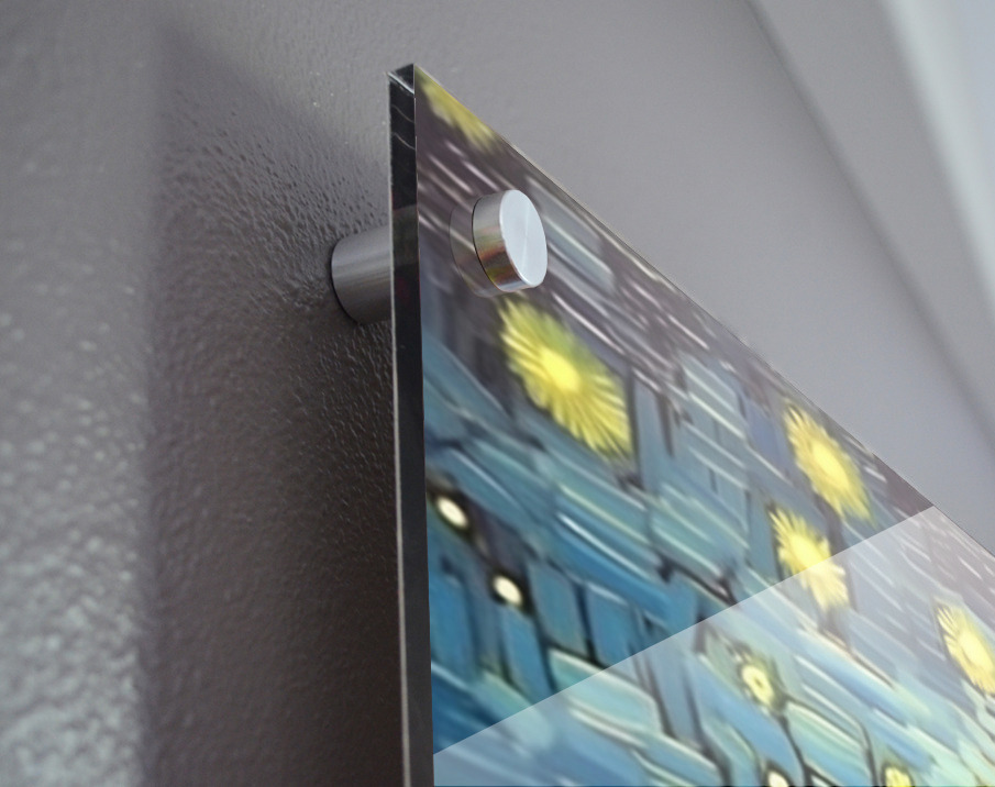 Fine Art made from a Premium polished, best-in-class, 99.9% optically pure acrylic and the latest Flatbed printing craftmanship.