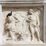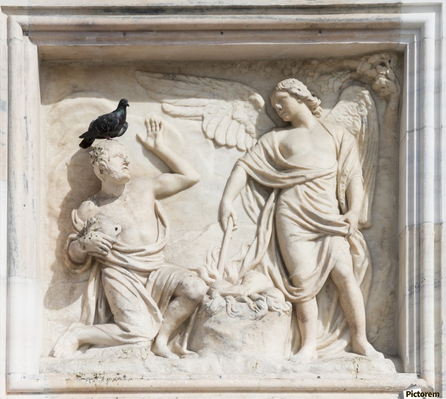 ABOUT THIS ARTWORK: CARVING ON FACADE ON MILAN CATHEDRAL; MILAN, LOMBARDY, ITALY