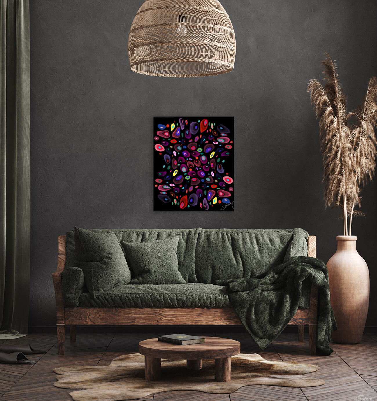 Shop "Joyful Mosaic of Vibrant Pebbles" – a dynamic abstract full of energy, positivity, and vibrant color. 25 Limited edition prints on canvas, metal, giclee.