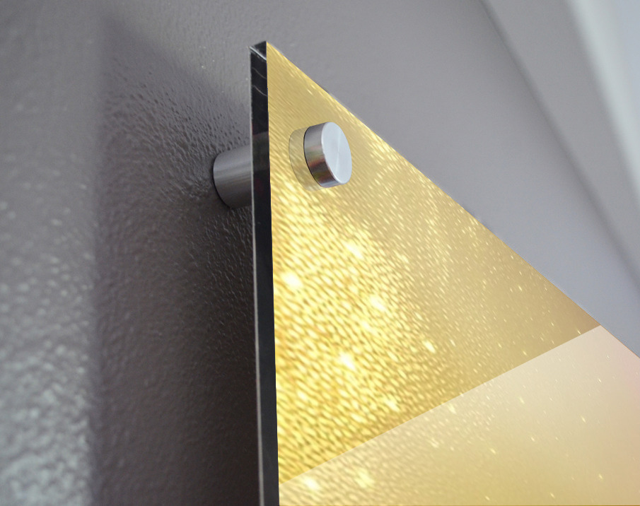 Printed to the edge - Ready to hang - provided with 4 premium polished aluminum stand off ( wall screws and mounting hardware provided )