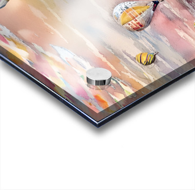 Printed to the edge - Ready to hang - provided with 4 premium polished aluminum stand off ( wall screws and mounting hardware provided )