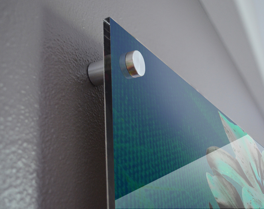 Printed to the edge - Ready to hang - provided with 4 premium polished aluminum stand off ( wall screws and mounting hardware provided )