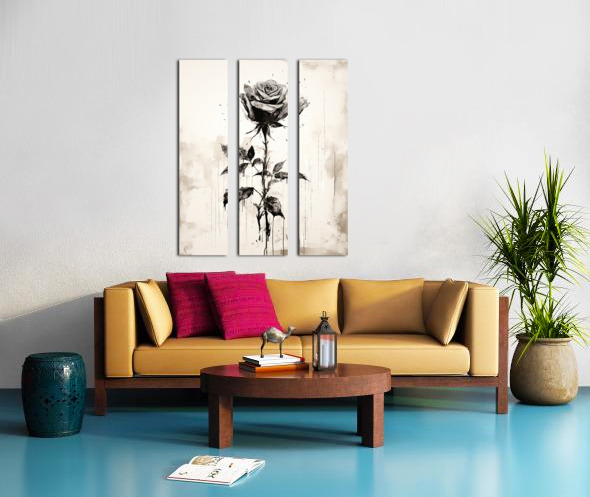 This is part of a series: Rose in Perpetuity. A series where the delicate and fleeting beauty of roses meets the fluidity of acrylic and water. This piece showcases a rose in a monochromatic palette with an homage to watercolors to evoke a sense of movement and fluidity.