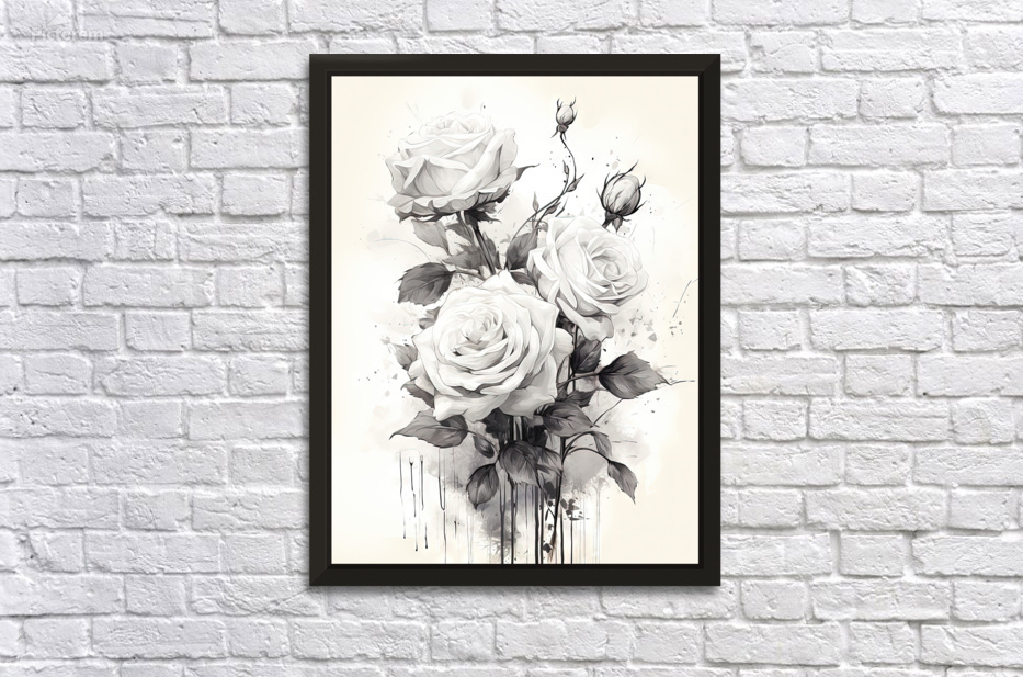 Monochrome Bouquet: Rose in Perpetuity Picture Frame Printing