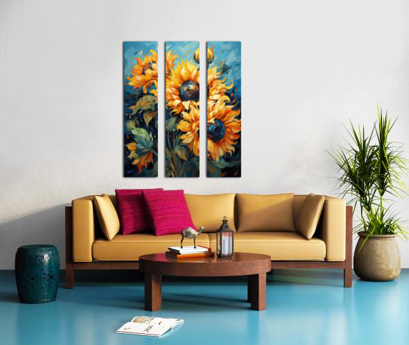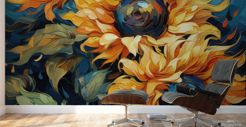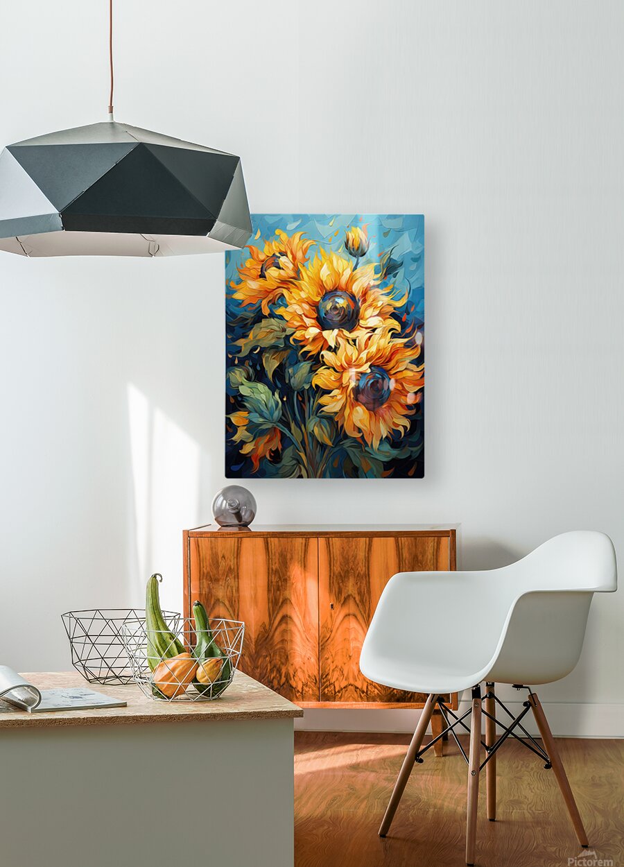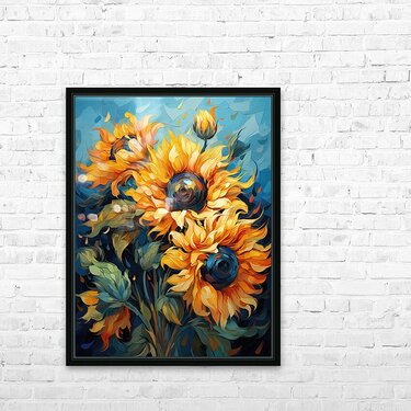 This is part of a series: Vibrant Visions. Step into the world of Vibrant Visions where Van Goghs inspiration merges with the captivating allure of sunflowers. Through bold brushwork vibrant colors and dynamic compositions this series invites you to experience the enchanting symphony of sunflowers in a new and vibrant light. "Lilting Lullaby" whispers a gentle melody through the language of sunflowers. Inspired by Van Gogh's enchanting artistry, this piece showcases a serene scene of sunflowers bathed in soft, golden light. The delicate brushstrokes and subtle tonal variations create a soothing composition, evoking a sense of tranquility and calm. Immerse yourself in the comforting embrace of this sunflower lullaby.