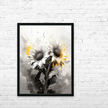 This is part of a series: Vibrant Visions. Step into the world of Vibrant Visions where Van Goghs inspiration merges with the captivating allure of sunflowers. Through bold brushwork vibrant colors and dynamic compositions this series invites you to experience the enchanting symphony of sunflowers in a new and vibrant light. In "Petal Pianissimo," Van Gogh's inspiration resonates in a delicate composition of sunflowers. The painting invites you to experience a moment of quiet introspection as sunflower petals unfurl with subtle grace. The soft, muted tones and gentle brushwork create a serene atmosphere, allowing you to appreciate the delicate beauty and intricate details of each petal, like a hushed piano melody.