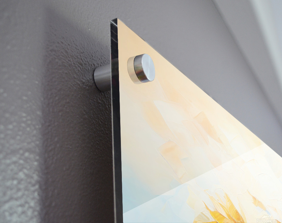 Printed to the edge - Ready to hang - provided with 4 premium polished aluminum stand off ( wall screws and mounting hardware provided )