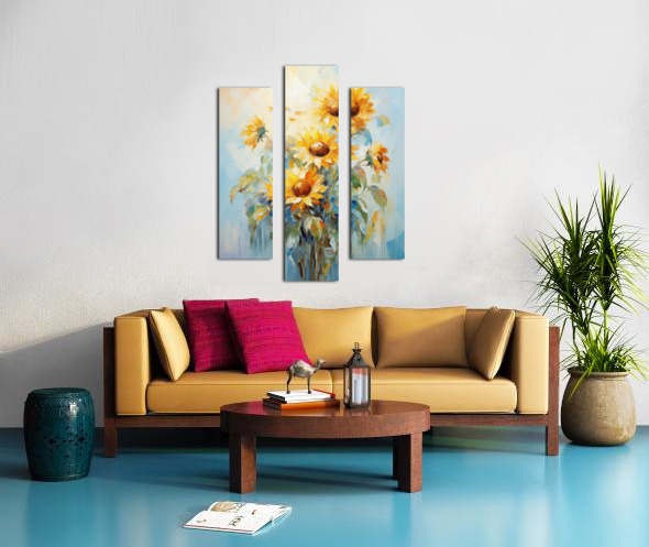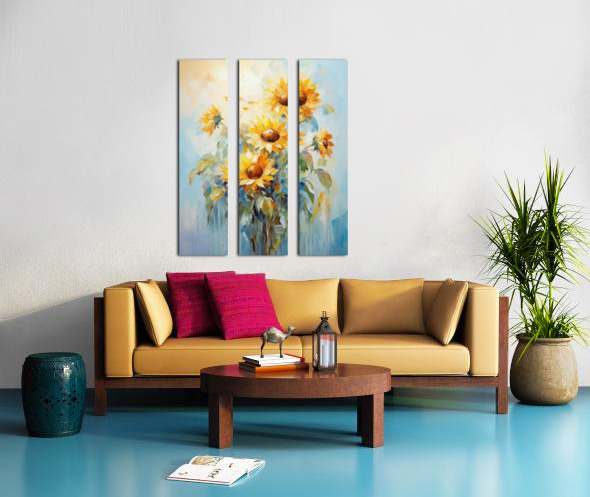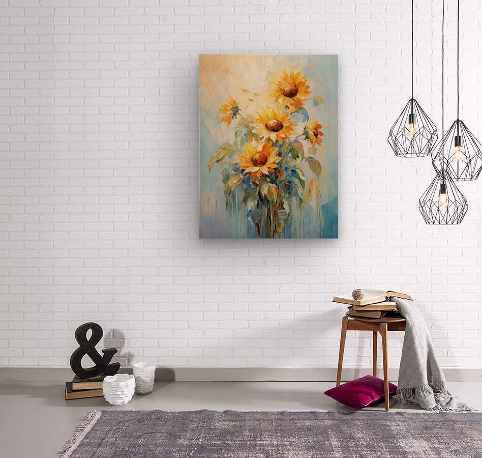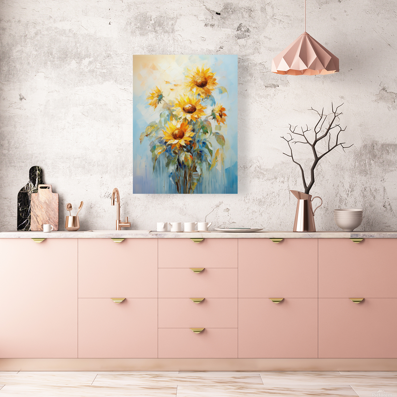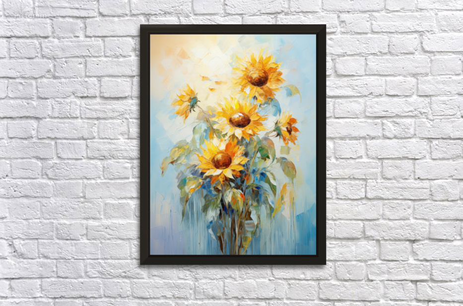 You are purchasing part of a series: Sunlit Symphony. Where Monets inspiration intertwines with the captivating allure of sunflowers inviting you to immerse yourself in a world of vibrant colors gentle melodies and serene contemplation. "Psalms of the Sunflower" exudes a tranquil and contemplative ambiance. In this piece, the sunflower takes center stage, its magnificent form reaching towards the heavens. Inspired by Monet's timeless artistry, the painting harmonizes delicate brushwork and gentle strokes of color. As you gaze upon this serene composition, allow yourself to be transported to a place of tranquility, where the sunflower whispers its poetic psalms of beauty and grace.