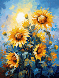 This is part of a series: Sunlit Symphony. Where Monets inspiration intertwines with the captivating allure of sunflowers inviting you to immerse yourself in a world of vibrant colors gentle melodies and serene contemplation. In "Sunflower Serenade," the essence of Monet's inspiration intertwines with the enchanting allure of sunflowers. Bathed in warm sunlight, the sunflowers radiate with golden splendor. The composition beckons viewers to immerse themselves in the symphony of nature's vibrant hues and delicate textures. As you behold this harmonious portrayal, let the captivating serenade of the sunflowers resonate within your soul.