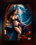 ABOUT THIS ARTWORK: ARABIAN NIGHTS BEAUTY BY THE OCEAN WITH RED ROSES CAPTIVATING FANTASY AI CONCEPT ART BY XZENDOR7