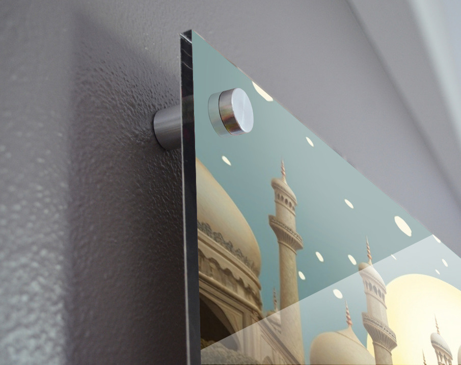 Printed to the edge - Ready to hang - provided with 4 premium polished aluminum stand off ( wall screws and mounting hardware provided )