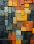A vertical image of a honey gold and sage green tilescape. The tilescape is made up of abstract tile shapes and are arranged in a way that creates a s...[+]