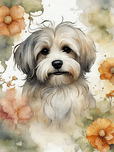 In this captivating watercolor portrait, the irresistible charm of a Havanese dog takes center stage. The Havanese's dog luminous, expressive eyes...[+]