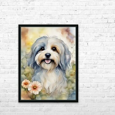 In this captivating watercolor portrait, the irresistible charm of a Havanese dog takes center stage. The Havanese's dog luminous, expressive eyes...[+]