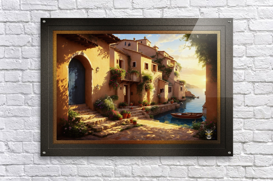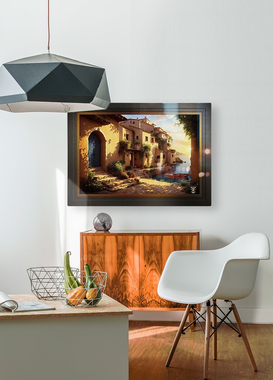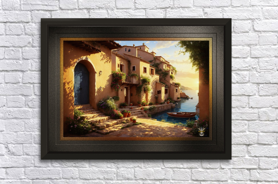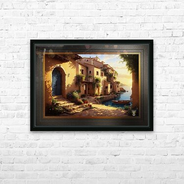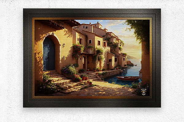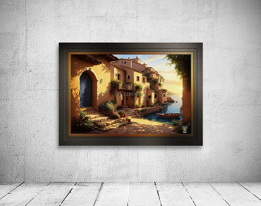 A Seaside Village In The Morning Sun Serene AI Concept Art by Xzendor7 Wall Decor Frame