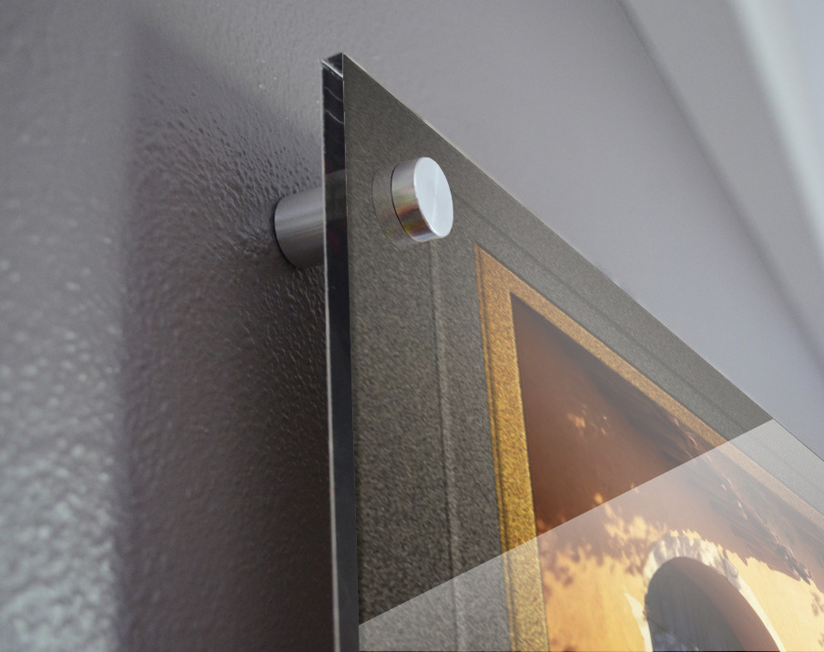 Printed to the edge - Ready to hang - provided with 4 premium polished aluminum stand off ( wall screws and mounting hardware provided )
