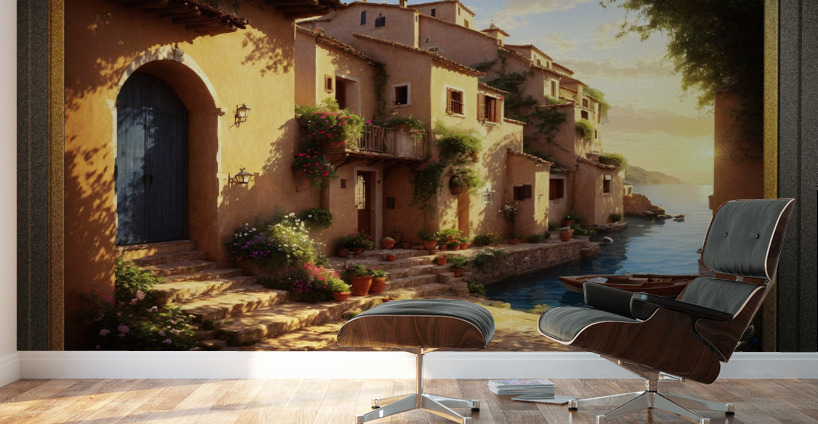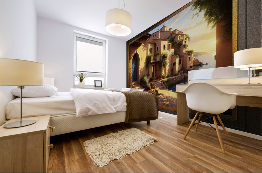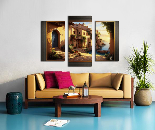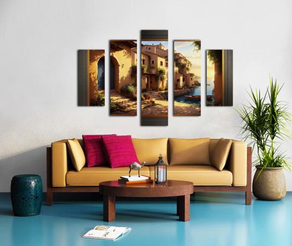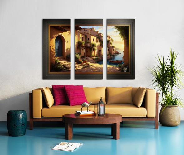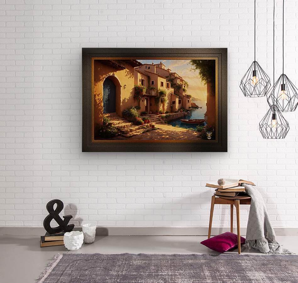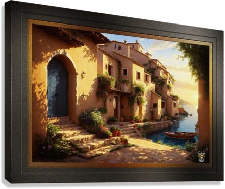 A Seaside Village In The Morning Sun Serene AI Concept Art by Xzendor7 Canvas print