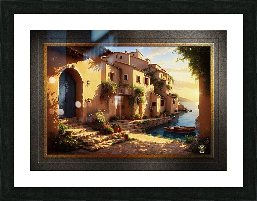A Seaside Village In The Morning Sun Serene AI Concept Art by Xzendor7 Picture Frame Printing