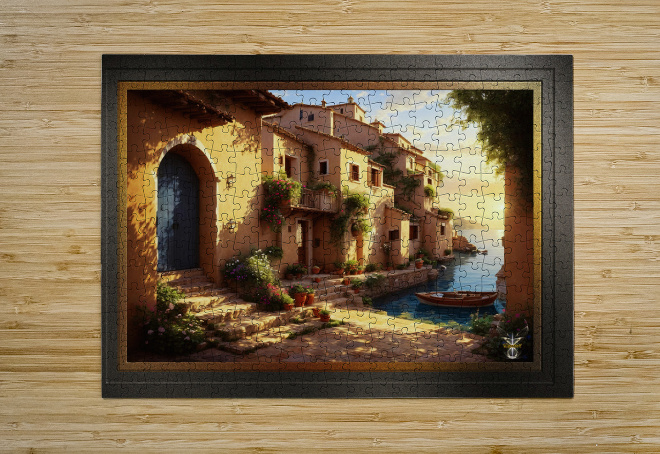 A Seaside Village In The Morning Sun Serene AI Concept Art by Xzendor7 xzendor7 Puzzle printing