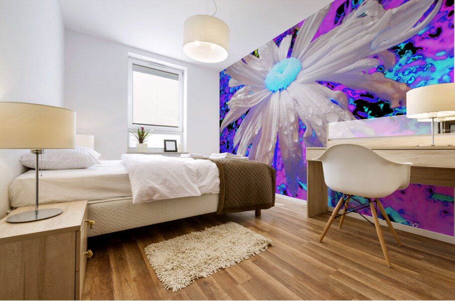 ABOUT THIS ARTWORK: COLOURED DAISY FLOWER WITH AN ABSTRACT BACKGROUND