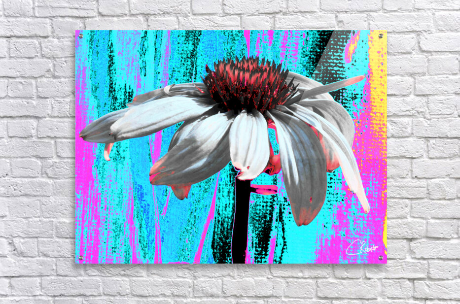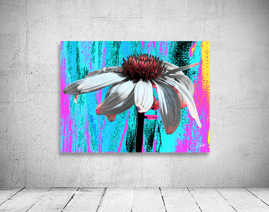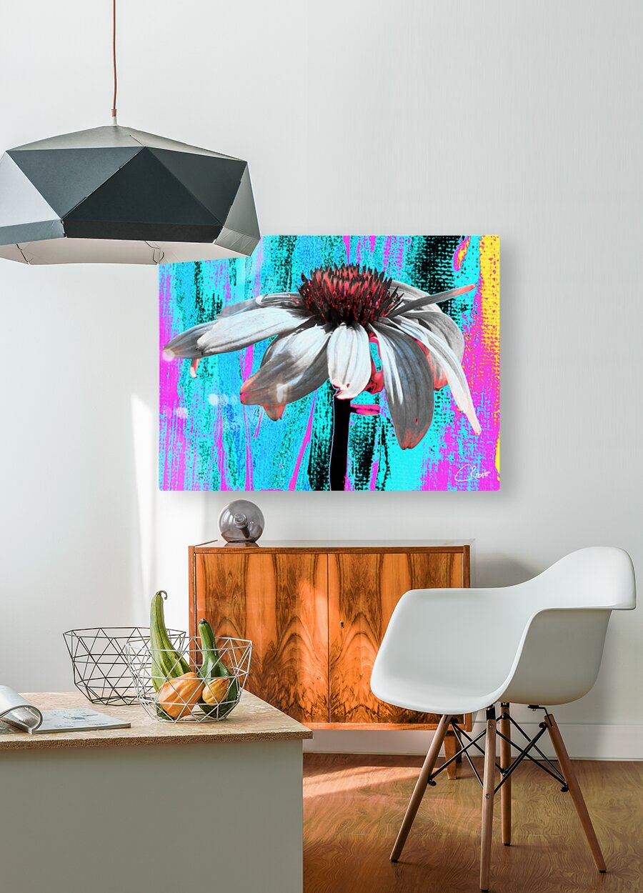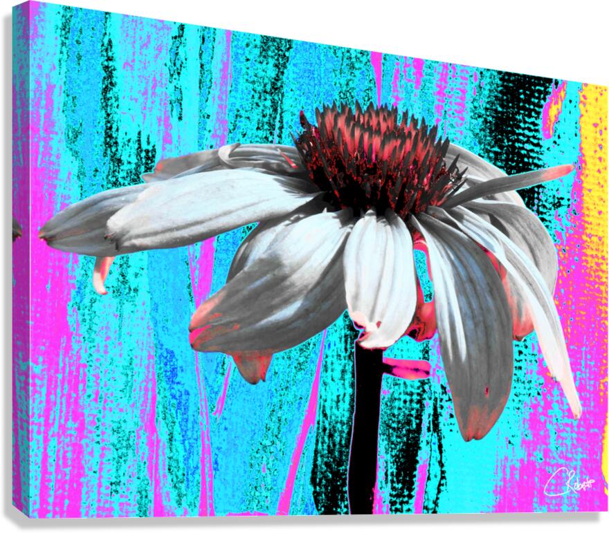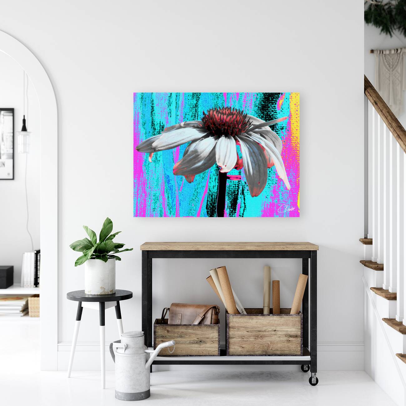 This stunning photographic art piece features a close-up of a vibrant pink Echinacea flower against a colorful, digitally manipulated background. Created by combining a hand-painted acrylic composition with a manipulated photograph, this design is truly one-of-a-kind. Printed on high-quality canvas, this piece is sure to add a pop of color and artistic flair to any wall. The intricate details of the flower, from its delicate petals to its spiky center, are beautifully captured in this unique work of art. Whether you're a lover of flowers or simply appreciate beautiful design, this Echinacea flower canvas print is a must-have for any art collection.