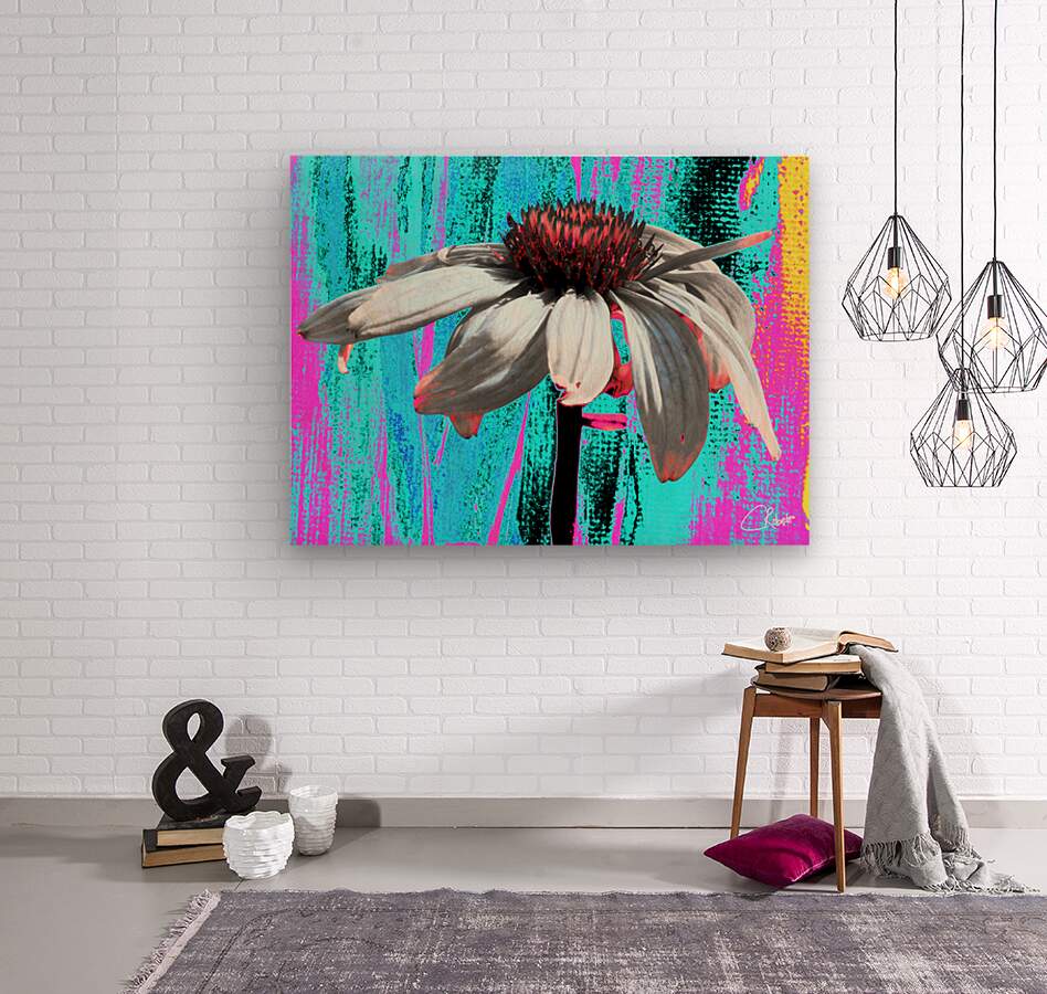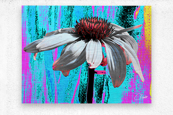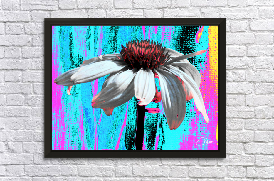 This stunning photographic art piece features a close-up of a vibrant pink Echinacea flower against a colorful, digitally manipulated background. Crea...[+]