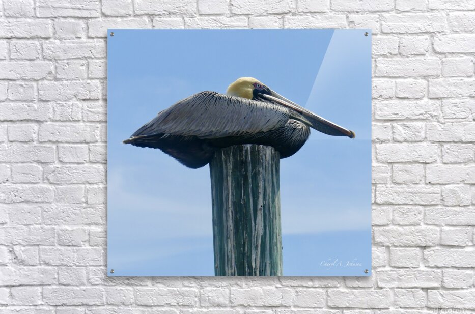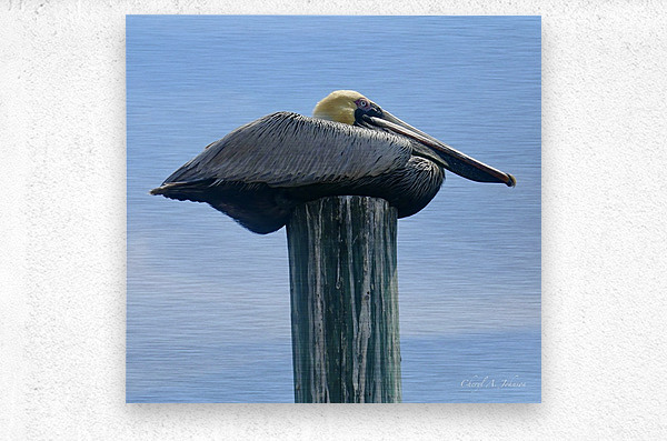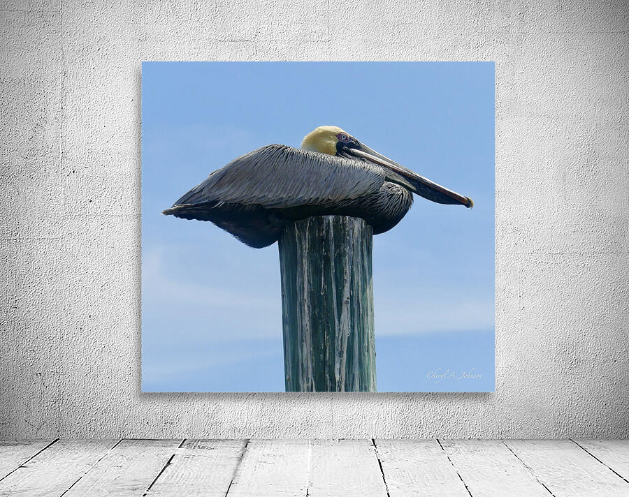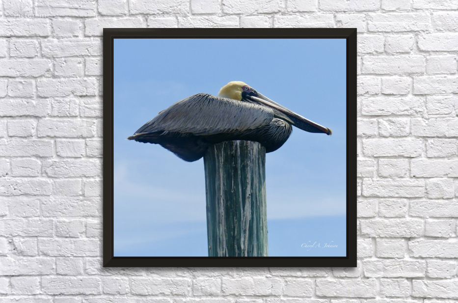Get this artwork "Pelican ~ resting on pylon Anna Maria Island" in a framed print.