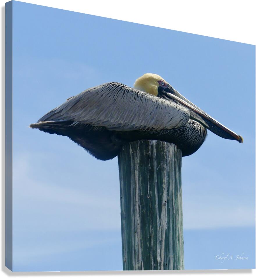 PELICAN ~ RESTING ON PYLON ANNA MARIA ISLAND CHERYL A JOHNSON  Canvas Print