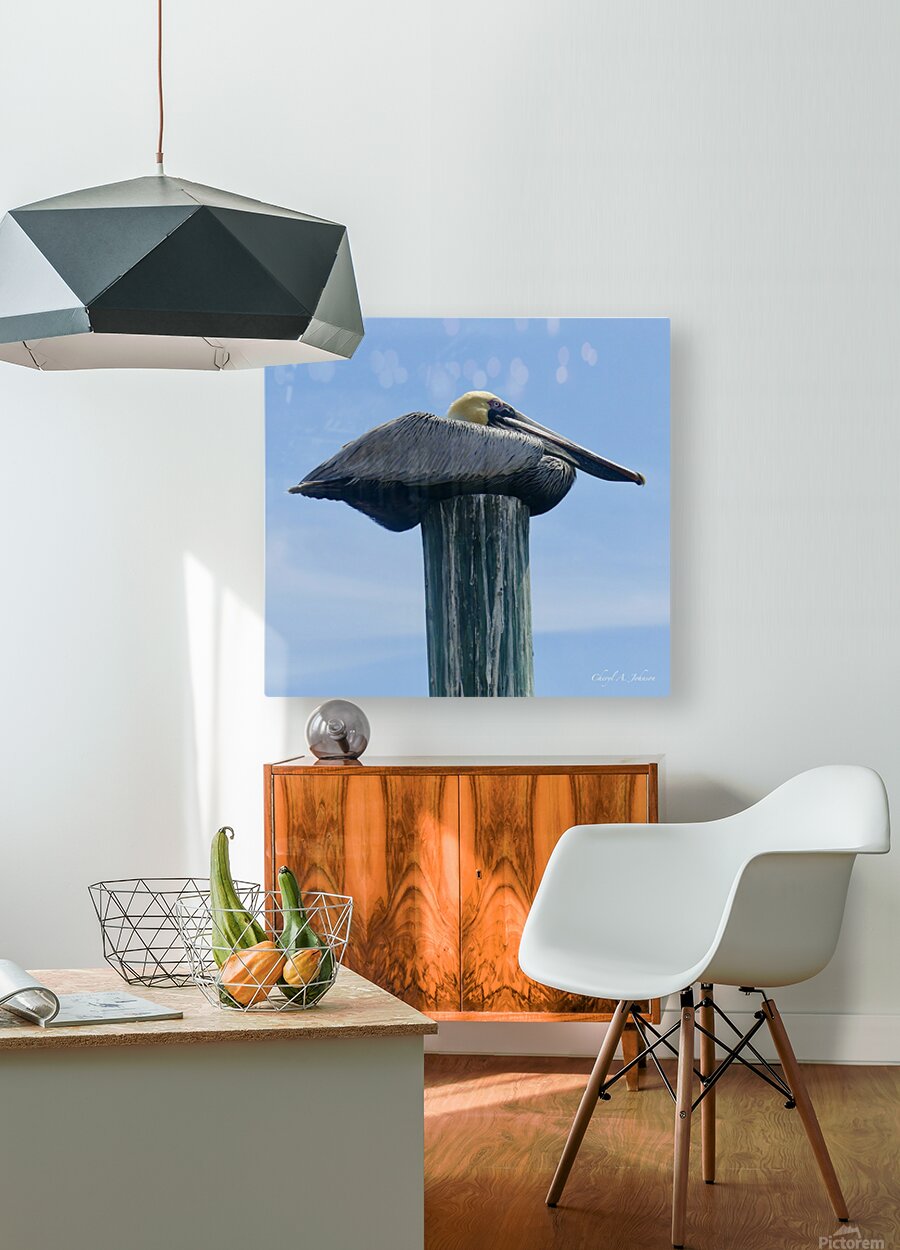 Pelican ~ resting on pylon Anna Maria Island  HD Metal print with Floating Frame on Back