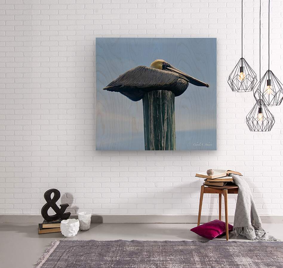 Pelican ~ resting on pylon Anna Maria Island  Wood print