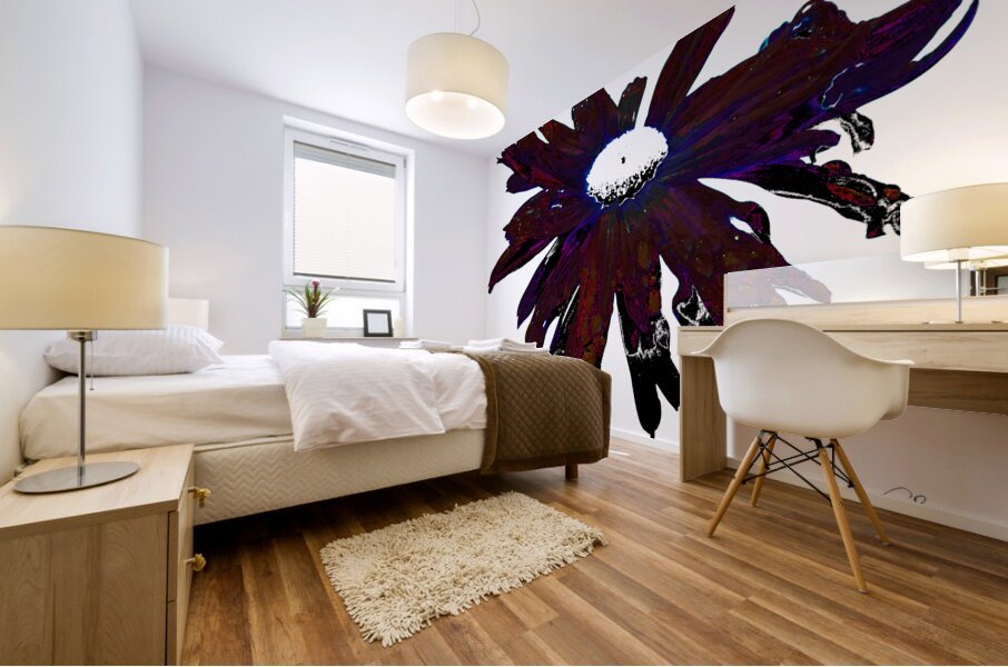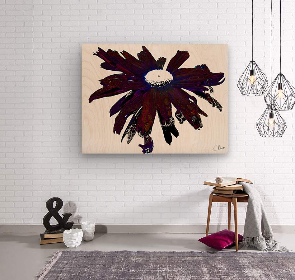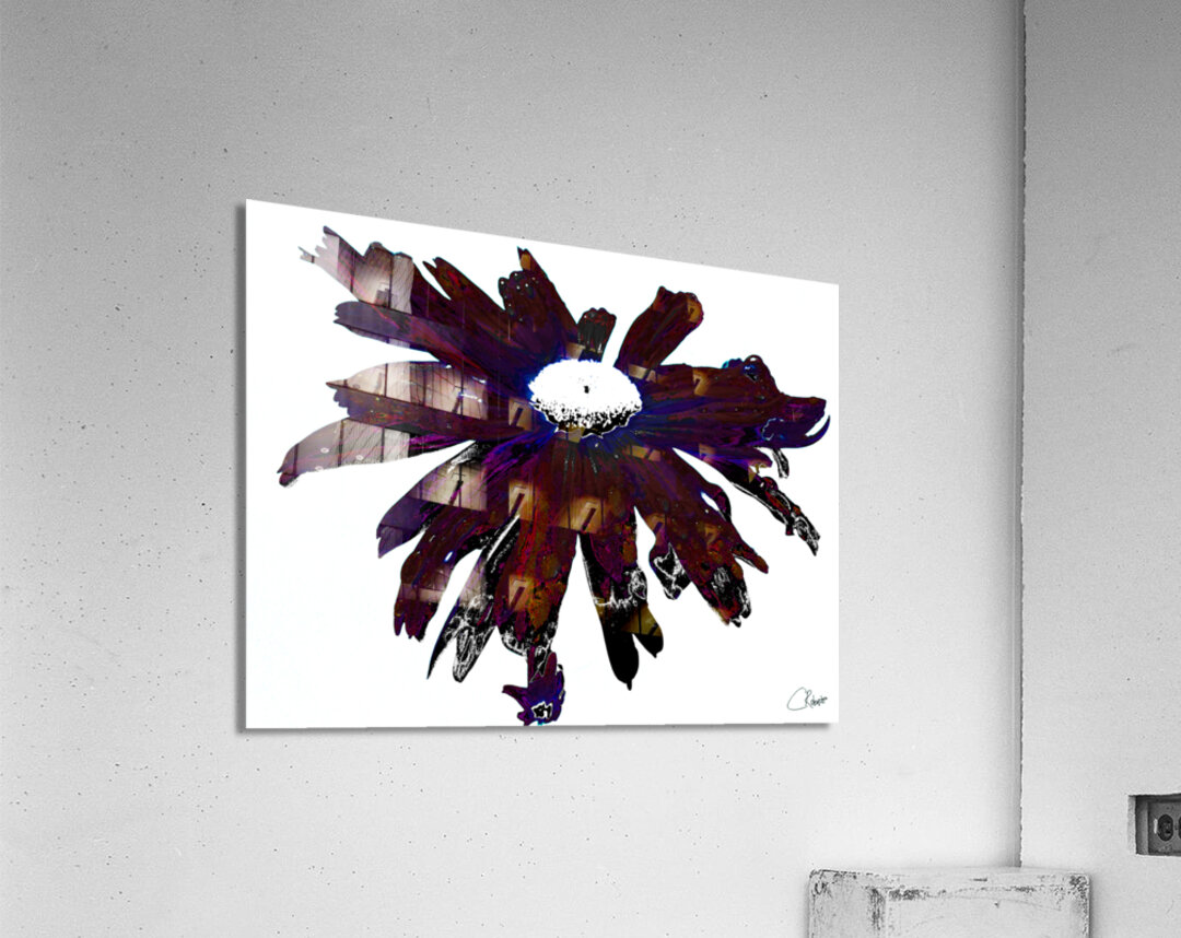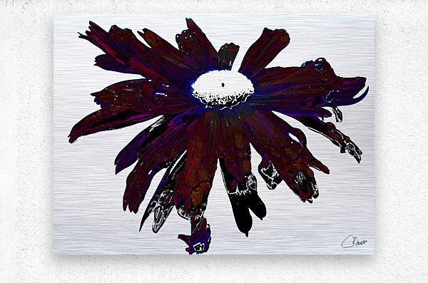 ABOUT THIS ARTWORK: DARK BURGUNDY DISTRESSED DAISY FLOWER ON A WHITE BACKGROUND