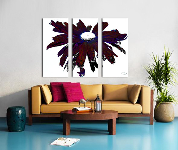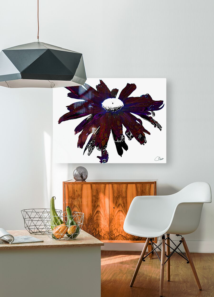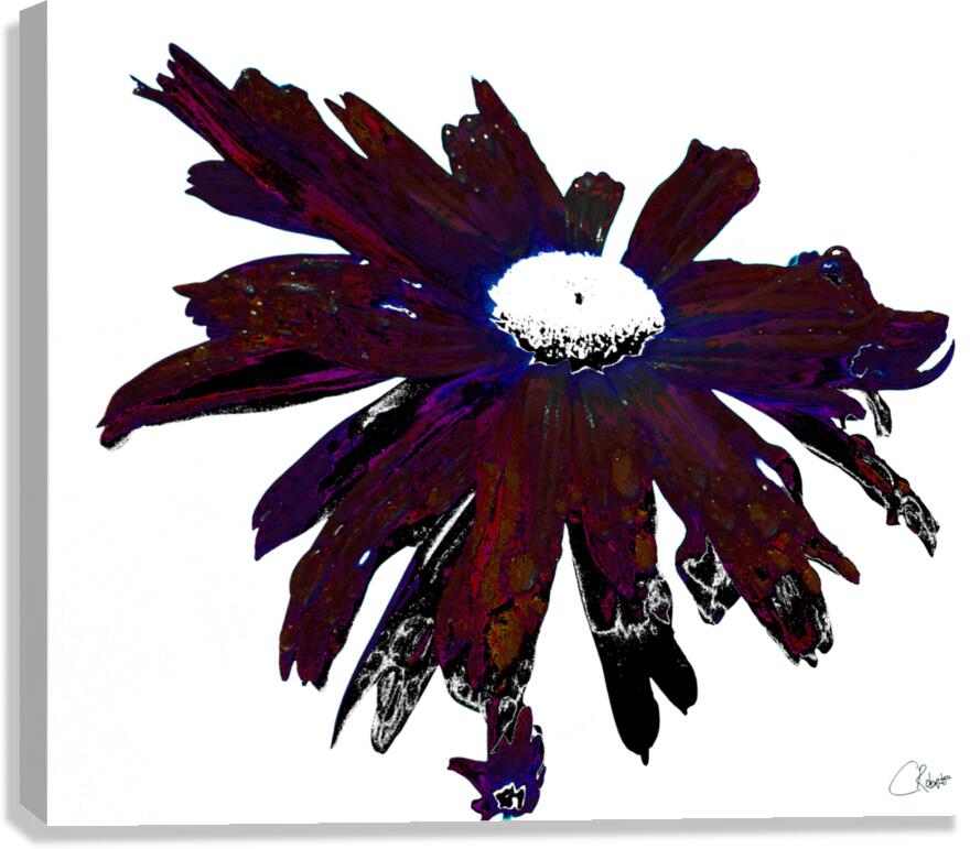 DARK BURGUNDY  DISTRESSED  DAISY FLOWER ON A WHITE BACKGROUND CATRIONA ROBERTS NATURE PHOTOGRAPHY AND DESIGNS  Canvas Print