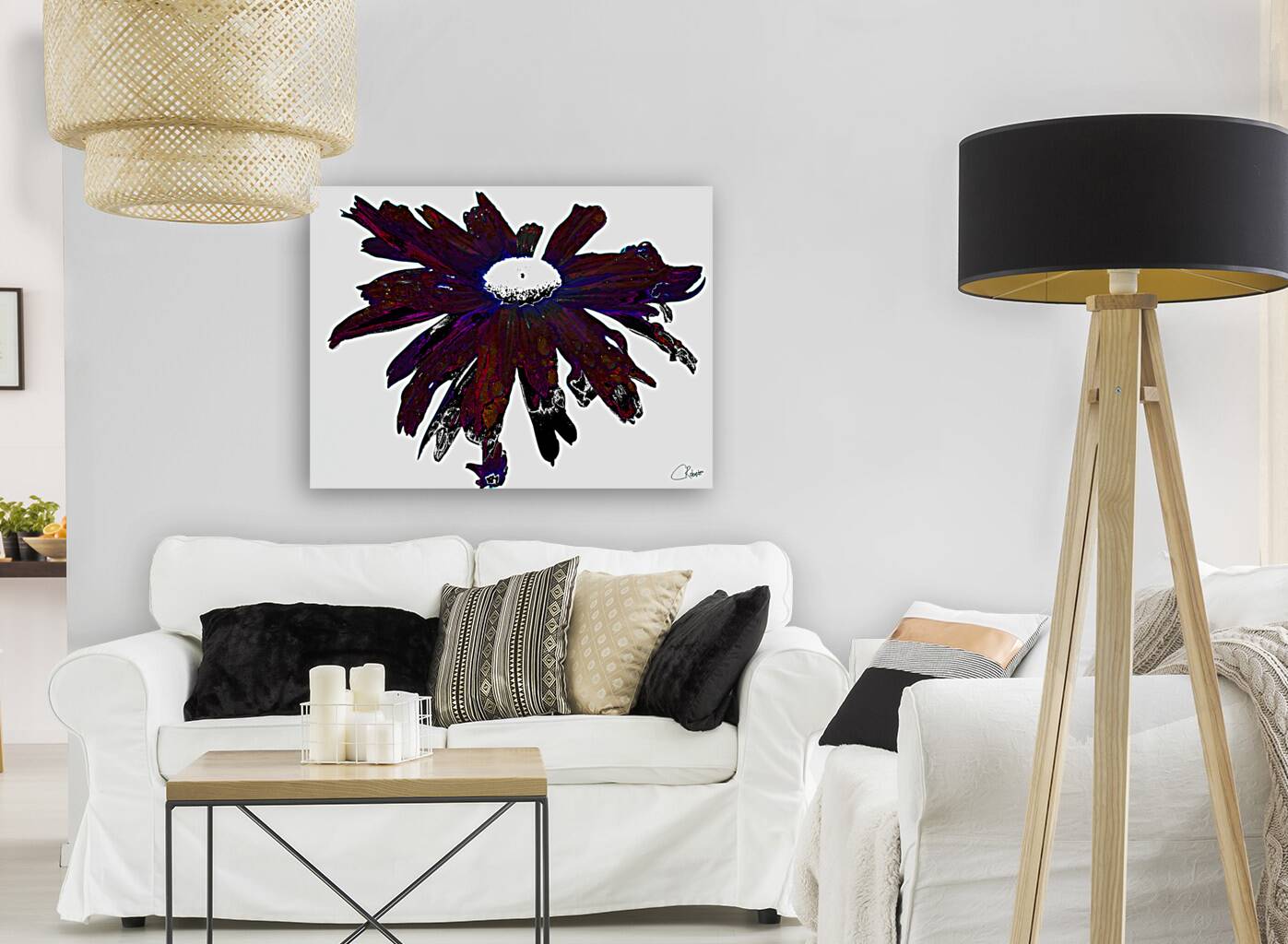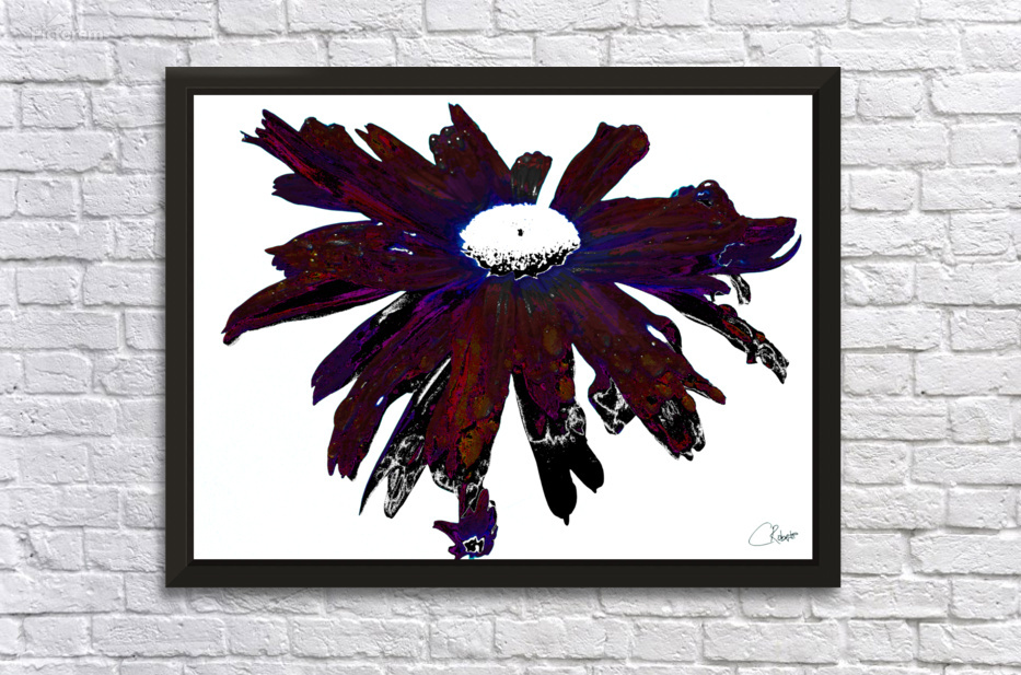 Get this artwork "Dark Burgundy Distressed Daisy Flower on a White Background" in a framed print.