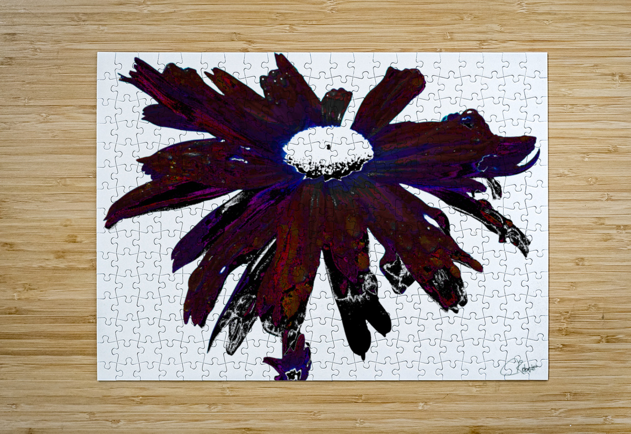 Dark Burgundy  Distressed  Daisy Flower on a White Background Catriona Roberts Nature Photography and Designs Puzzle printing