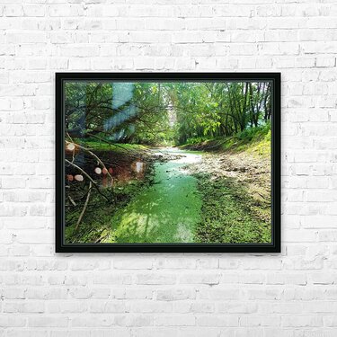 This picture was taken during my project "Mission: Plastic Cormorant", in which I clean rivers and take photos, showing both beauty and pollution. In little creeks like this one, a lot of plastic garbage can be found, once it is dry in summertime. It took me days to clean it, but I didn´t mind spending the time out in nature. Oh and of course I made sure not to disturb any wild animals while cleaning (exept maybe that spider whose net I accidentally wore as a hat). Have a nice day! P.S. Your purchase helps me to keep up cleaning rivers! I also hope to inspire you to pick up some trash as well.