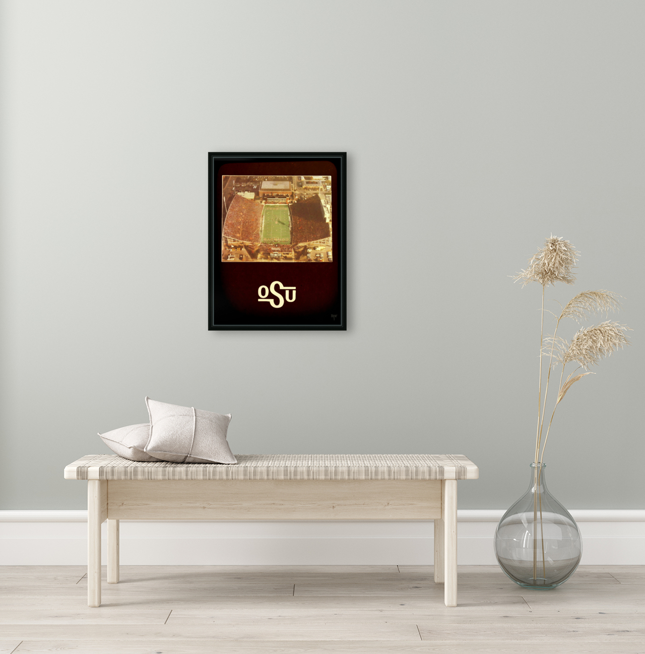 Oklahoma State Cowboys Throwback Lewis Field Art | Viewfinder Slide Sports Art | Row One | Over 11,000 Collectible Sports Art Pieces and Historic College Art Prints | Created from 1980's Oklahoma State Cowboys football memorabilia and remixed for the aesthetics of a retro viewfinder slide, Row One Brand's retro Oklahoma State Lewis Field football wall art will look fantastic in your game room or office. Derivative art © 2023 Row One Brand This historic college football art print is not affiliated with, licensed, sponsored, authorized, or endorsed by any college, university, team, league, artist, other brand, or any licensing entity. This art was created from artwork published without a copyright notice.