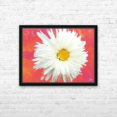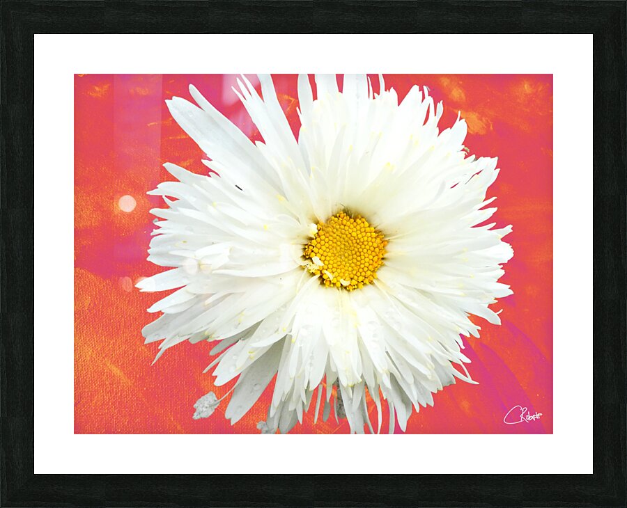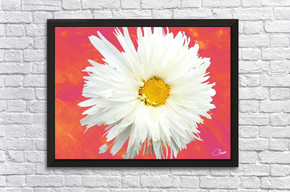 Double White Daisy Flower on a Vibrant Heatwave Abstract Background Picture Frame Printing