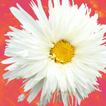 DOUBLE WHITE DAISY FLOWER ON A VIBRANT HEATWAVE ABSTRACT BACKGROUND