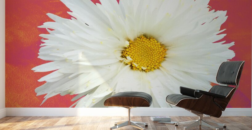 Get this artwork "Double White Daisy Flower on a Vibrant Heatwave Abstract Background" in a framed print.