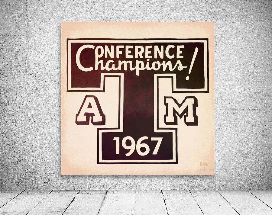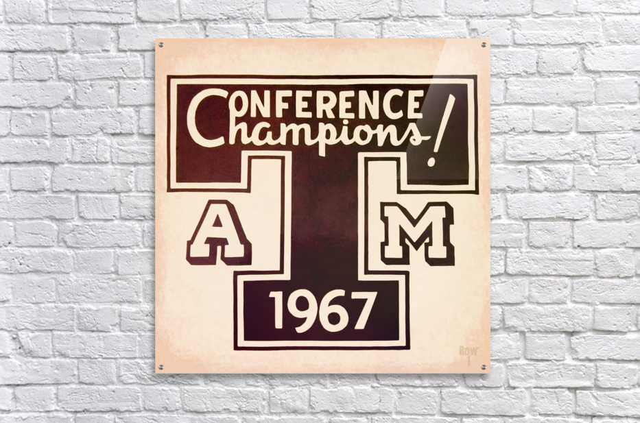 1967 Texas A&M Aggies Football Art | SWC Conference Champions | Row One | Over 11,000 Collectible Sports Art Pieces and Historic College Art Prints | Created from '67 Texas A&M Aggies football art and remixed for aesthetics, Row One Brand's Texas A&M Southwest Conference Champions throwback football art will look fantastic in your game room or office. Derivative art © 2023 Row One Brand This historic college football art is not affiliated with, licensed, sponsored, authorized, or endorsed by any college, university, team, league, artist, other brand, or any licensing entity. This art was created from 1967 memorabilia art published without a copyright notice.