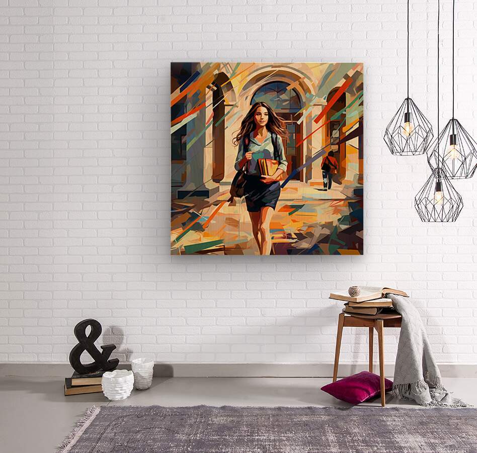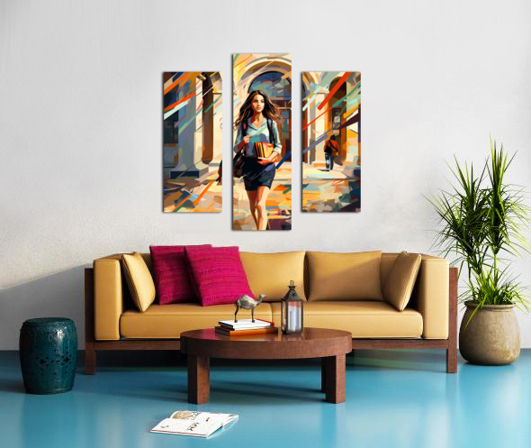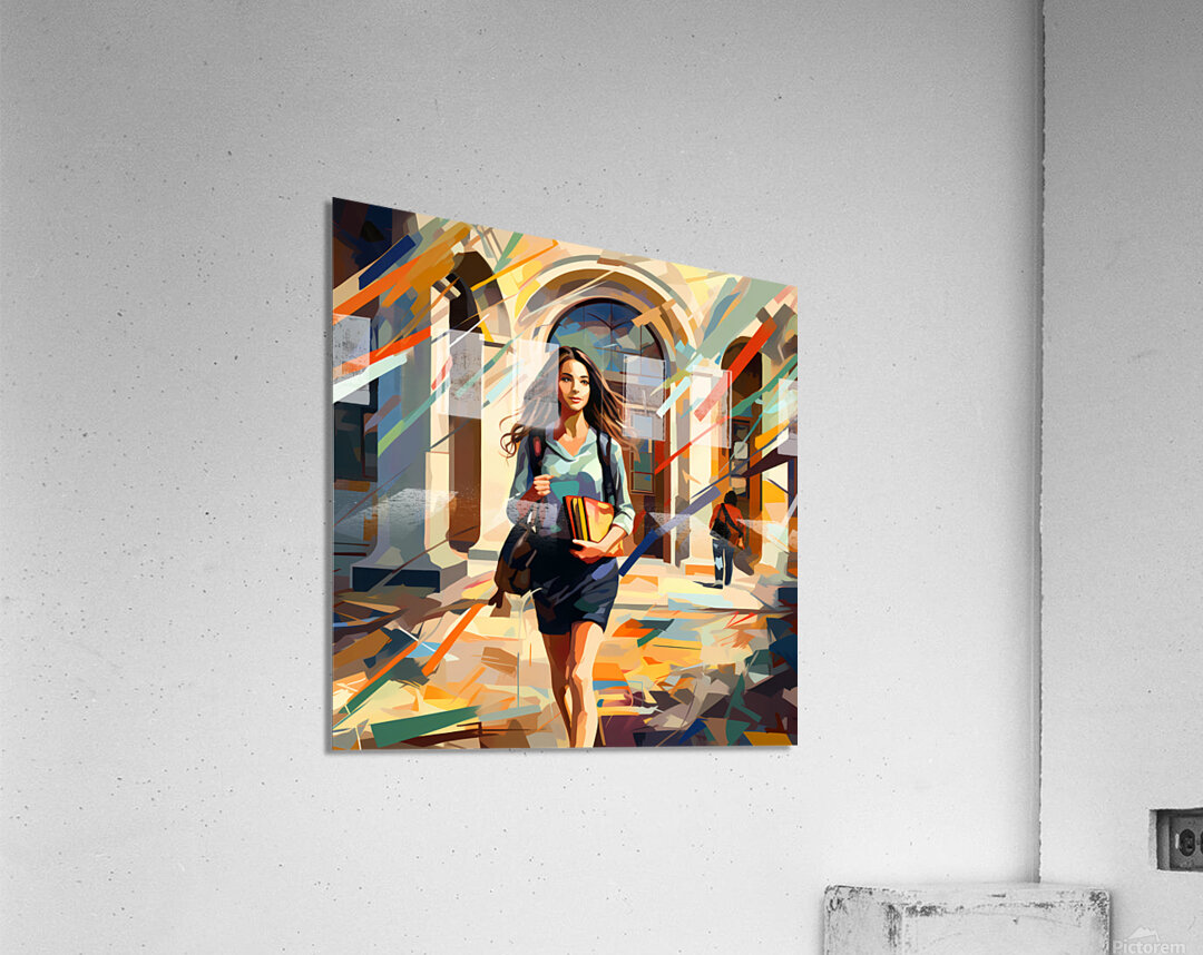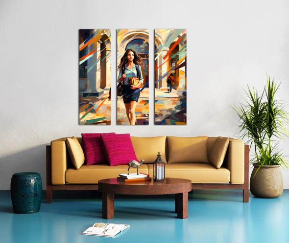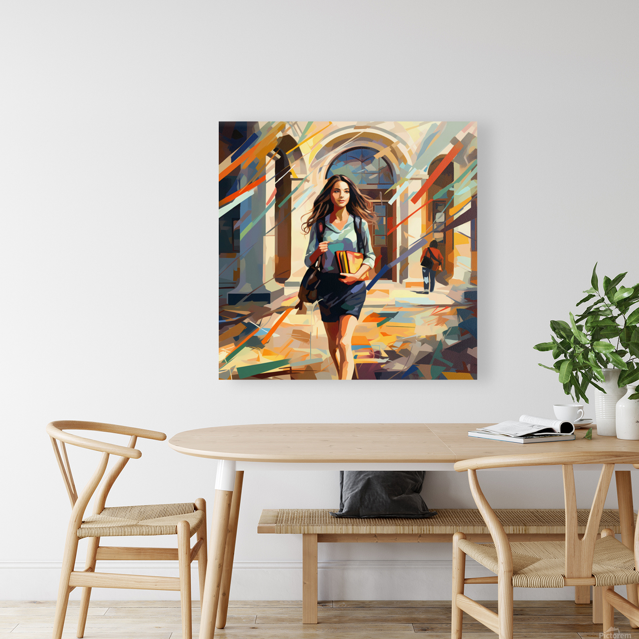 In the captivating depiction titled "The Studious Scholar," the essence of a young and determined scholar springs to life. The scene portrays a confident and slightly smiling young woman as she progresses down a corridor, with each step metaphorically symbolizing the unfurling potential of her brilliant mind. Carrying books that serve as emblems of knowledge and growth, she advances along a path illuminated by the radiant light of her aspirations. The subtle curve of her smile mirrors the optimism that accompanies her on this journey of intellectual discovery. Every stride she takes echoes the blossoming of her talents and the promise of a future marked by achievements. The vibrant colors and skillful portrayal within this depiction capture the energy and vitality emanating from her every step. "The Studious Scholar" stands as a visual testament to the power of education, determination, and the innate potential of a young mind. It invites viewers to witness the transformative nature of learning and the beauty that arises when confidence and curiosity walk hand in hand. This portrayal serves as a reminder that every step forward represents progress toward realizing the boundless opportunities that lie ahead in the realm of knowledge and personal growth.