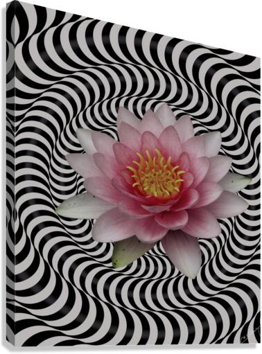 Shop "Water Lily in Its Vibrant Glory" – black & white striped water lily symbolizing calm and elegance. 25 Limited edition art prints on canvas, me...[+]