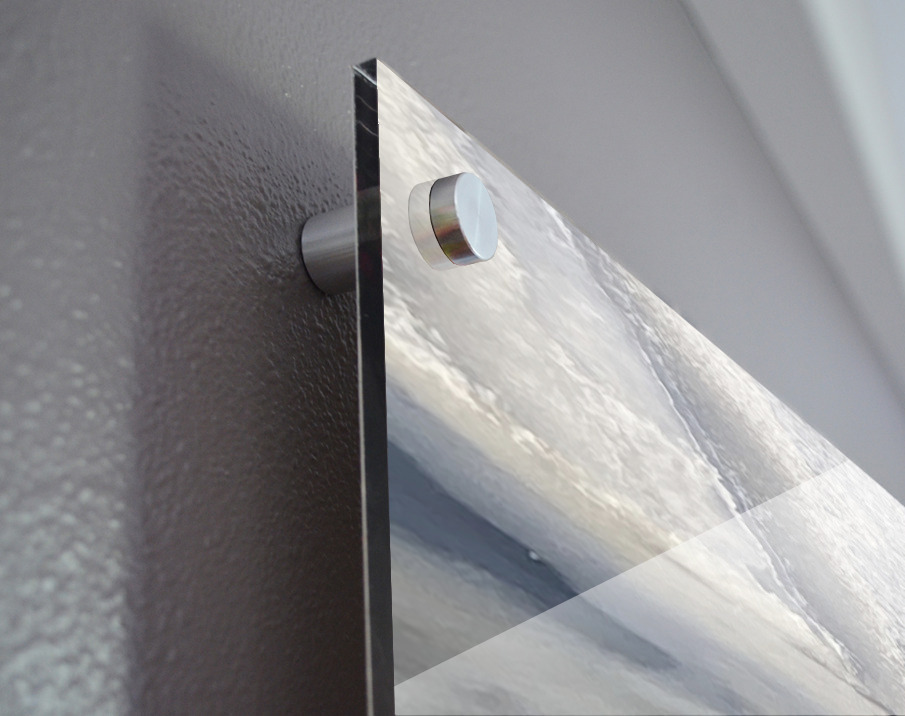 Printed to the edge - Ready to hang - provided with 4 premium polished aluminum stand off ( wall screws and mounting hardware provided )